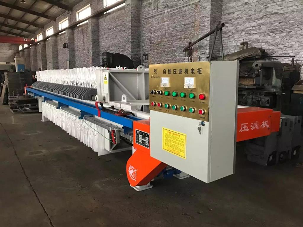 污泥壓濾機_正常之后才能夠壓緊濾板加壓過濾,過濾時候的壓力和過濾溫度_在規定范圍里面,過高會引起滲漏,溫度過高的話容易造成塑料濾板變形的情況,加料時懸浮液要濃度均勻。不要混有雜物;卸餅后濾布及濾板_沖洗干凈,不能有殘渣粘貼在密封面或進料通道內,否則會影響污泥壓濾機進料暢通及濾板的密封性,這樣會造成因濾板兩側壓力不平衡,導致濾板變形損壞。